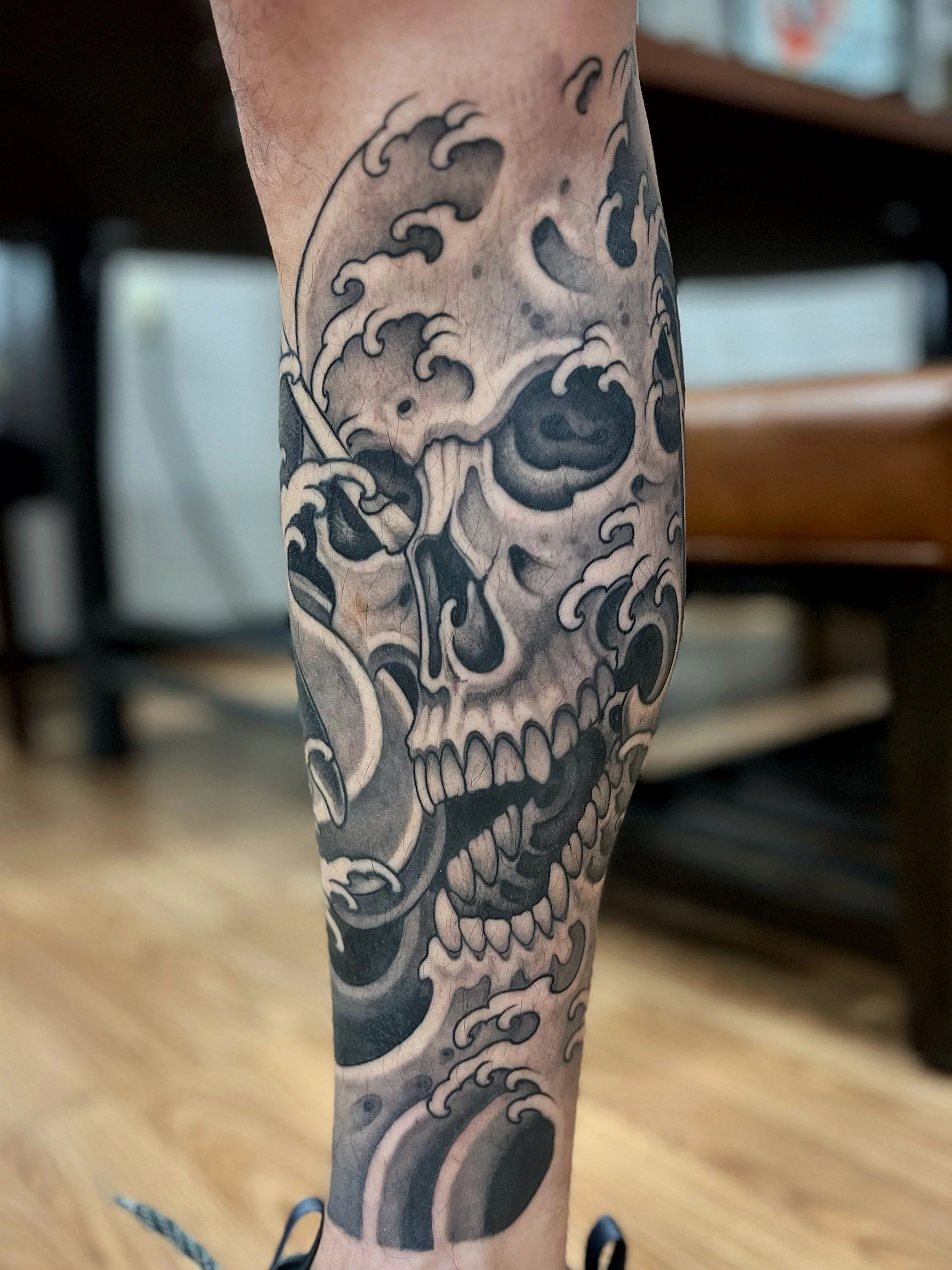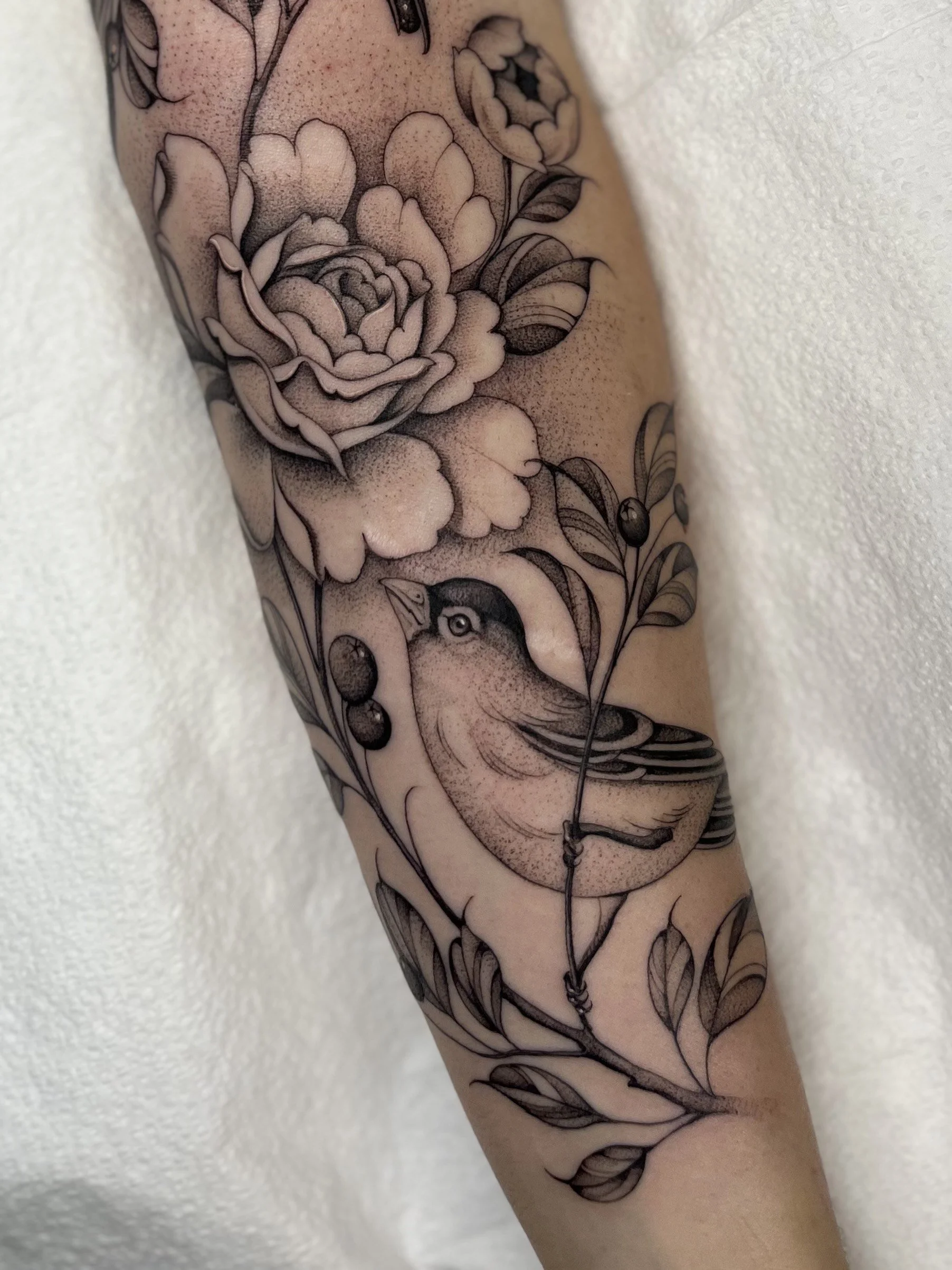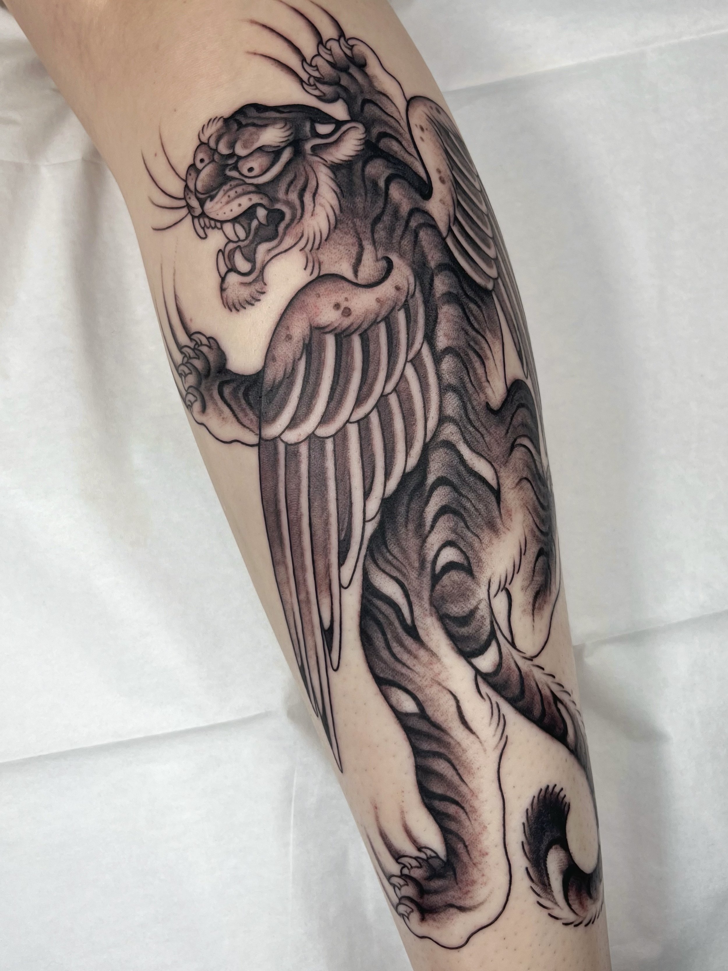 Simon primarily focuses on displaying his favorite elements of nature, florals and animals through elegant black and grey work as well as Japanese influenced tattoos.