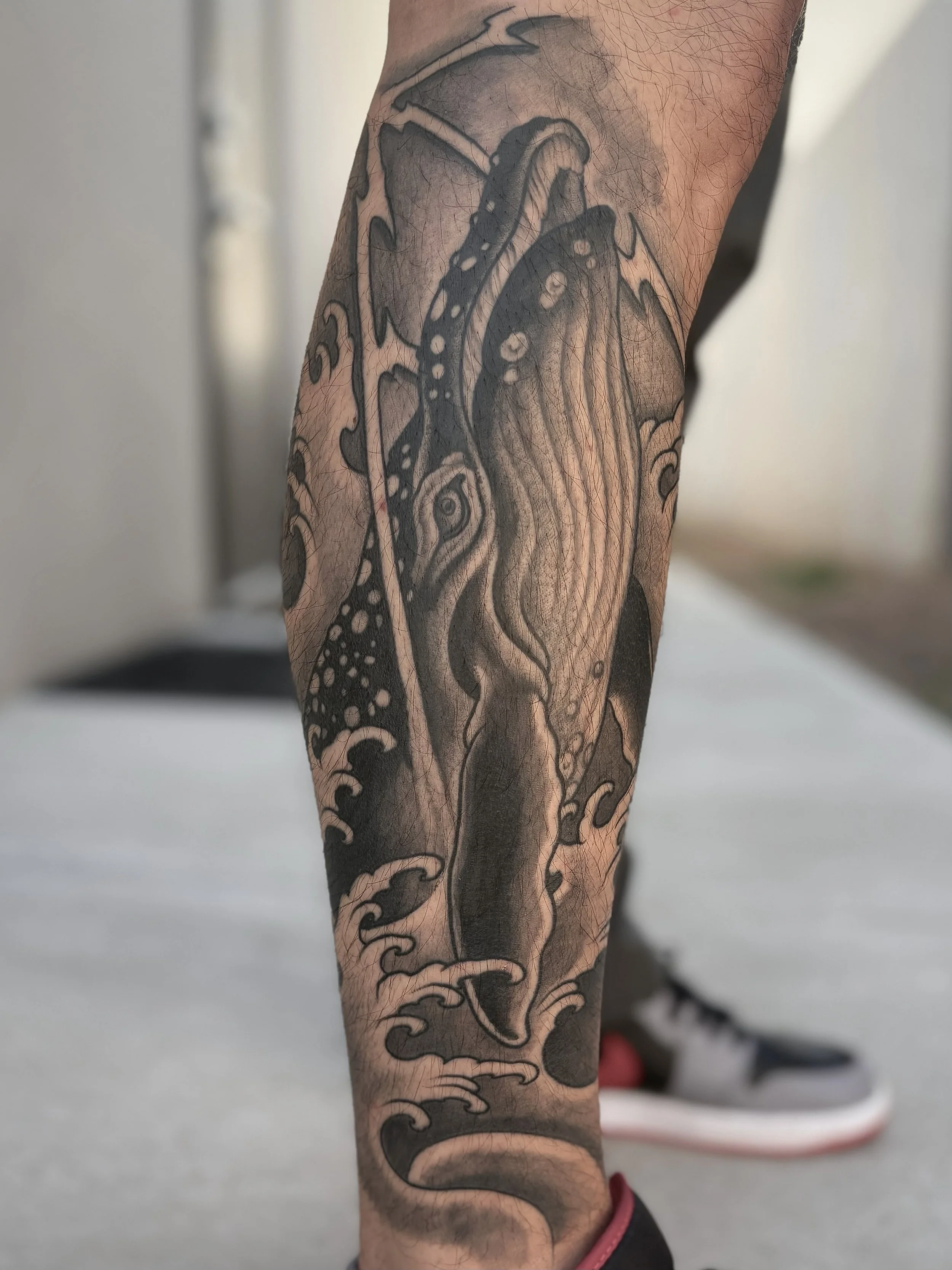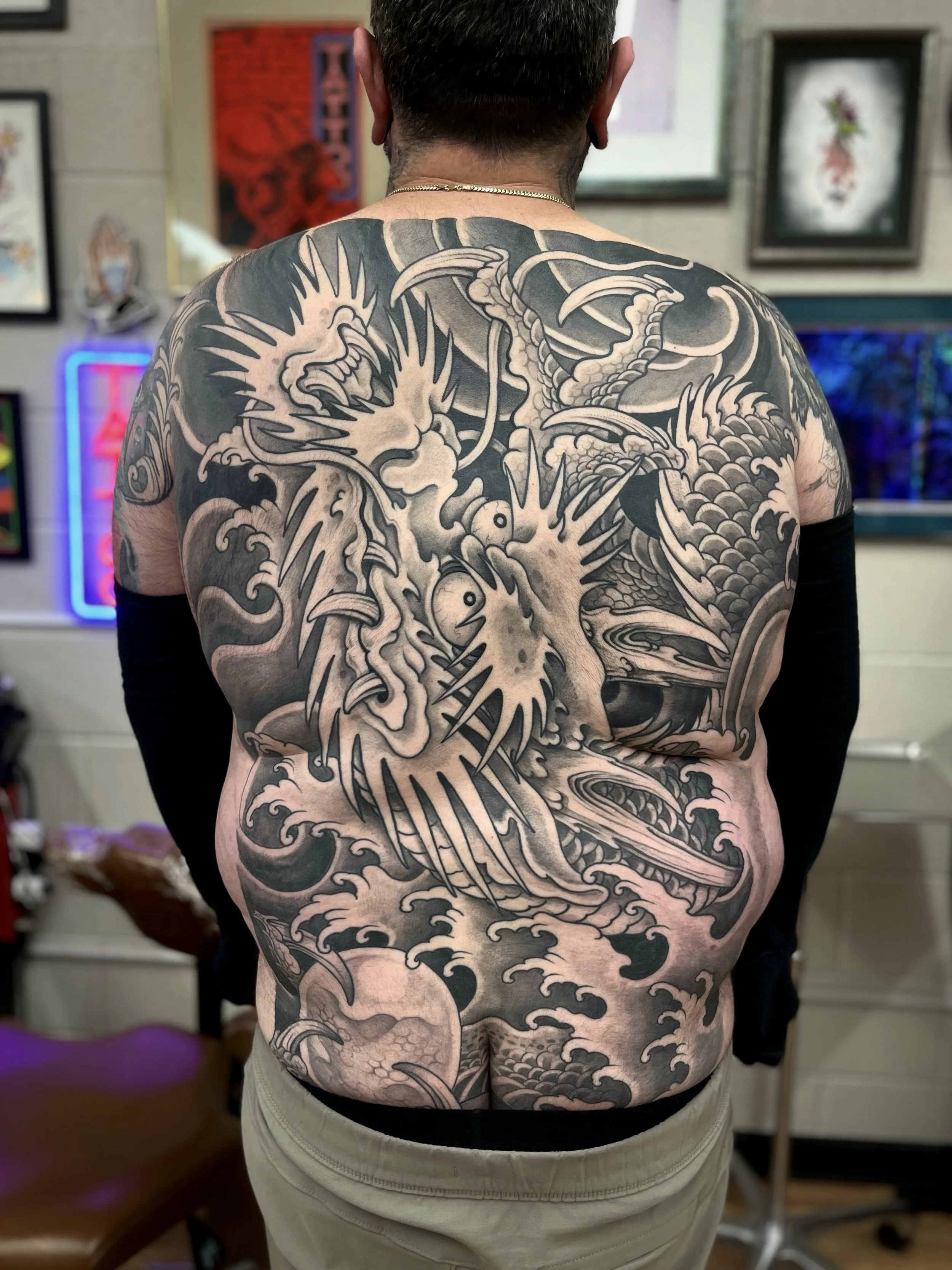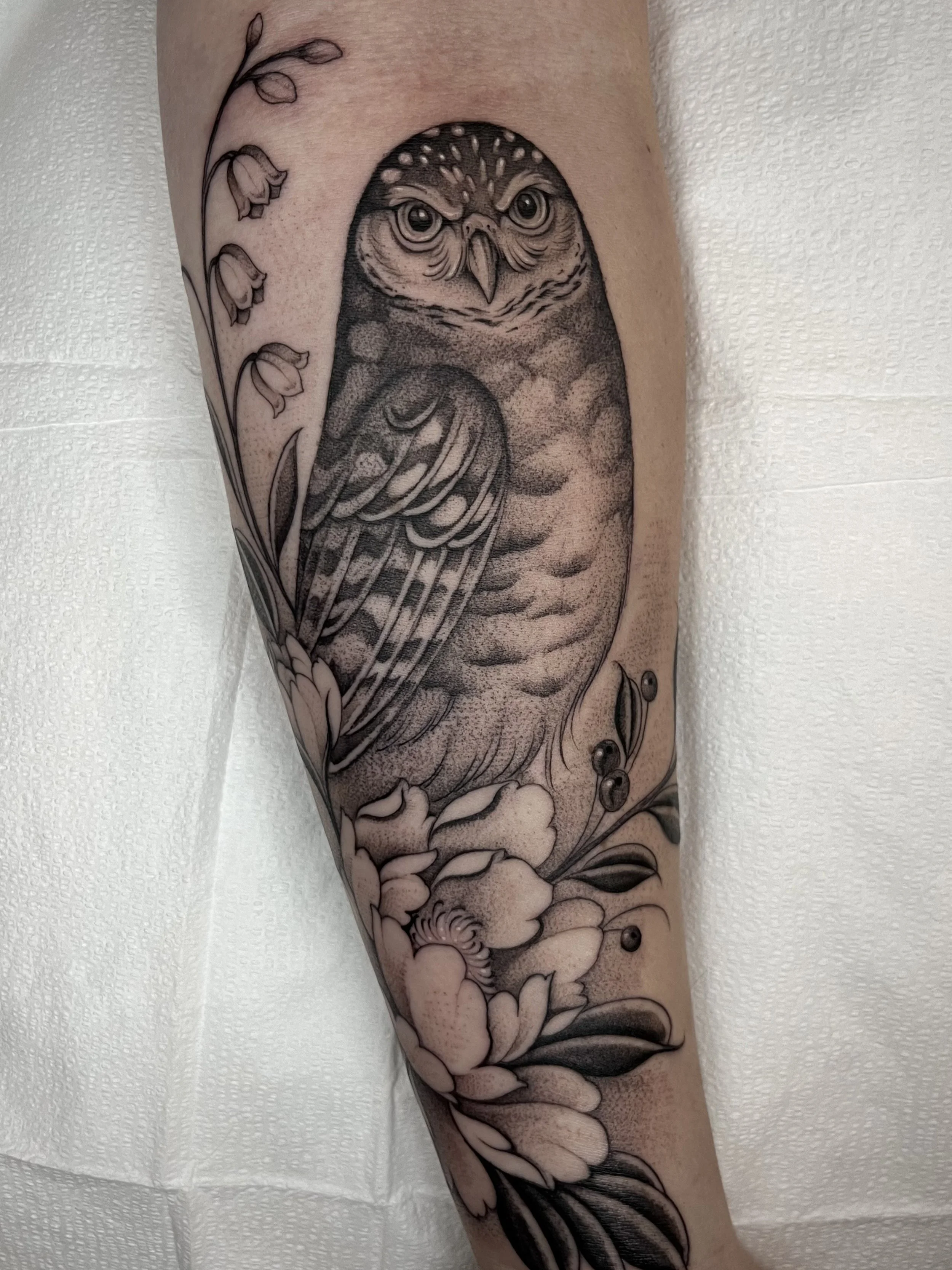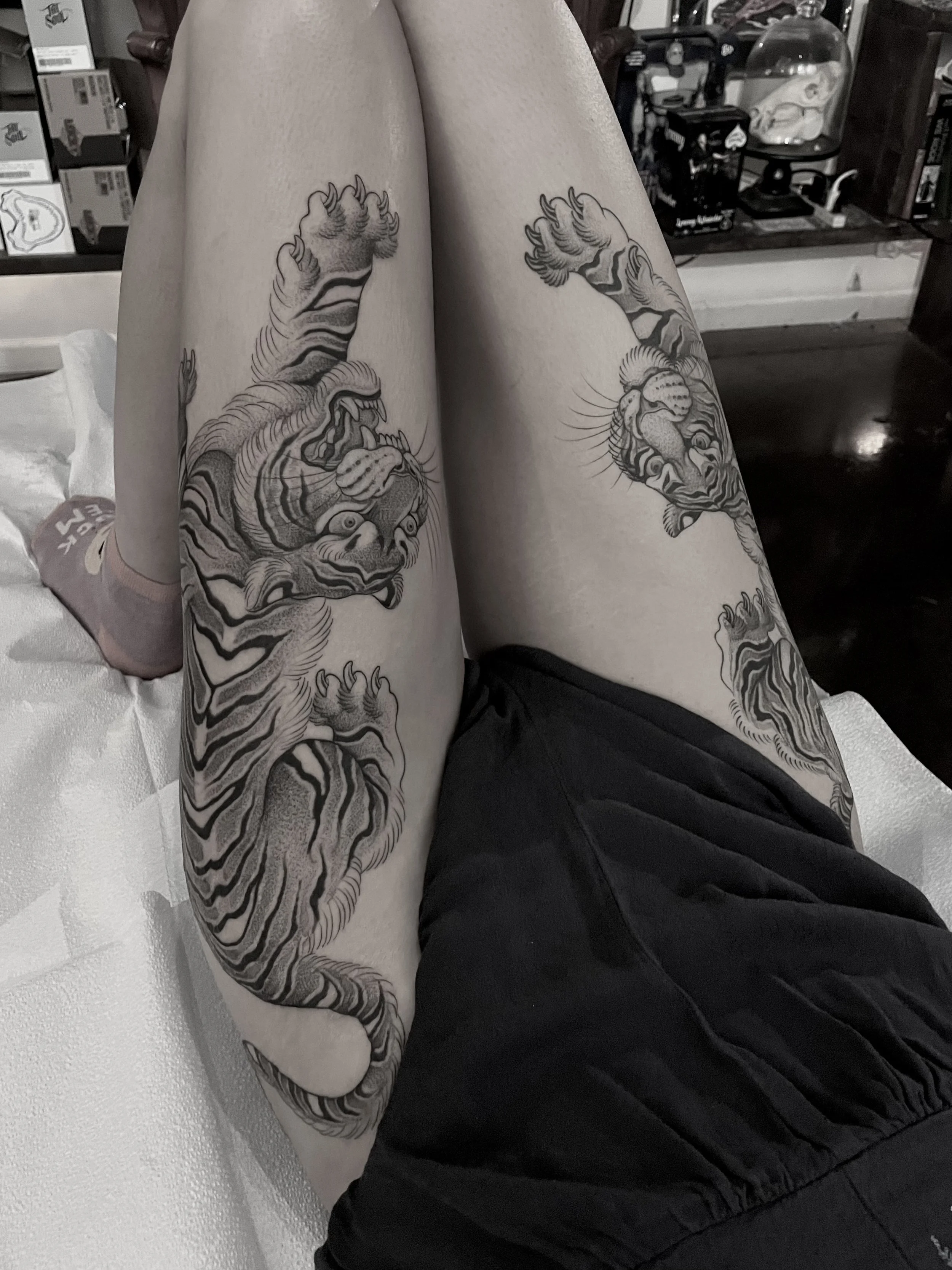Simon primarily focuses on displaying his favorite elements of nature, florals and animals through elegant black and grey work as well as Japanese influenced tattoos.